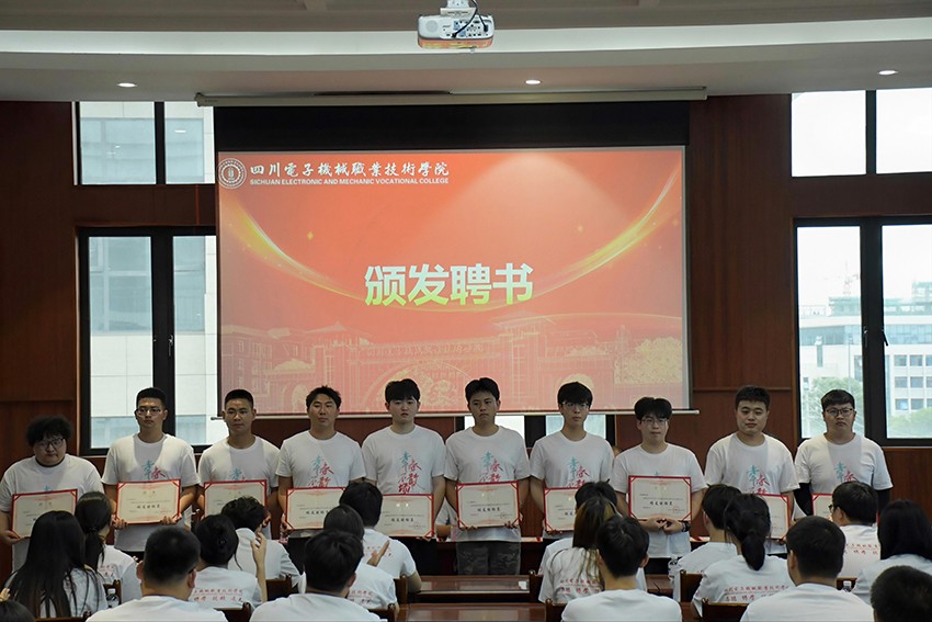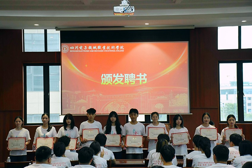 随后,学生处处长李虎郑重宣读了《关于聘任2025届毕业生校友联络员的决定》,标志着新一届校友联络工作正式启动。聘书颁发环节,与会领导分批次为来自电子信息工程BBV在线、机电工程BBV在线、经济管理BBV在线、建筑与人文BBV在线的校友联络员代表颁发了聘书。这份承载着信任与责任的聘书,象征着2025届毕业生们正式肩负起连接母校与校友的桥梁使命。