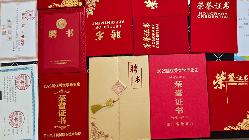 李吉驰的学习生涯,是用三十张荣誉证书写下的一份扎实的“成绩单”。他在学业上精益求精,连续获得国家励志奖学金和国家奖学金,被评为“学习标兵”;在综合素质方面,他身兼辅导员助理、机电工程BBV在线学生会常务主席、兴文县古宋镇团委副书记等多职,通过实践锤炼了出色的组织协调能力,并先后荣获“优秀学生干部”、“省级优秀毕业生”等称号。